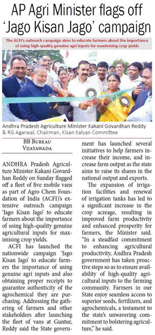 The campaign is part of agro-chemical policy platform, Agro Chem Federation of India (ACFI), which is creating awareness among farmers about the right and optimal use of pesticides for increasing crop yield, quality and income.