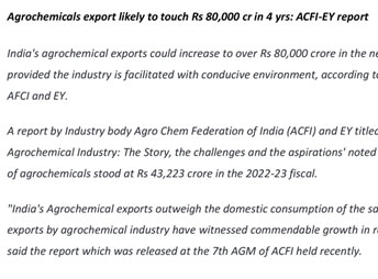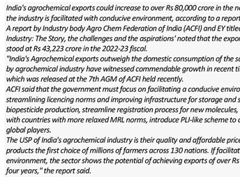 Agrochemicals exports may touch Rs. 80000 cr