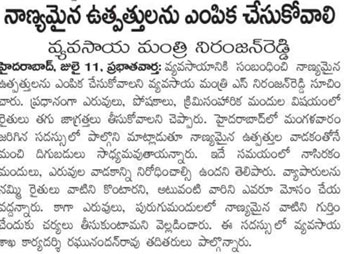 Agriculture Minister Singireddy Niranjan Reddy flags-off 10 Mobile Vans